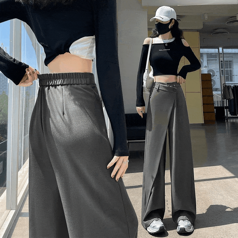 不規則闊腿西裝褲,墜感韓版通勤簡約,寬鬆休閒百搭直筒長褲子